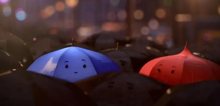 Мультфильм Синий зонтик 2013 раскрывает историю в сюжетной линии как История о голубом зонтике, который обомлел, увидев красный зонтик. И если их глазам суждено встретиться, то они поймут, что просто созданы друг для друга....