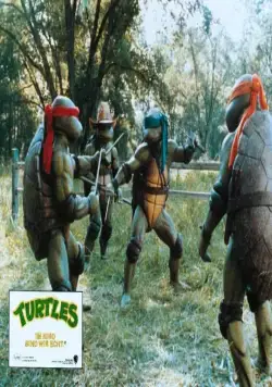 Фильм Черепашки-ниндзя 1990 раскрывает историю в сюжетной линии как Четыре черепашки и крыса в канализационных трубах Нью-Йорка вляпались в радиационные отходы, мутировали и превратились в человеческого роста разумных черепашек, а крыса, которая раньше жила у японского мастера ниндзя-цу, обучила их боевым искусствам. Черепашки Леонардо, Рафаэль, Микеланджело и Донателло подружились с тележурналисткой и помогли остановить рост молодежной преступности....