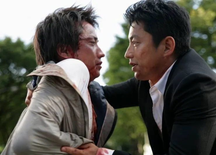 Фильм Соломенный щит 2013 раскрывает историю в сюжетной линии как Внучку влиятельного политика Нинагавы убивают. Подозреваемый — Киомару, у которого есть судимость за убийство девушки. Через три месяца Нинагава размещает объявление в трёх крупных газетах: «Убейте Киомару, и я заплачу вам 1 миллиард иен», после чего убийца приходит в полицию с повинной. Теперь, когда на Киомару объявлена охота, пяти следователям нужно доставить его из Фукуоки в Токио....
